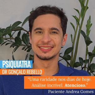 Tive minha primeira consulta com o Dr Gonçalo e ele me deixou bem a vontade pra explicar como eu me sentia, o que eu estava buscando, traumas e anseios. Fez bastante perguntas afim de realmente entender o meu caso, ou pelo menos não deixar passar nada que fosse importante. Começamos um novo tratamento e ele demonstrou total disposição e boa vontade em me ajudar nesse processo de “investigação”, além de ser sempre explicar suas orientações pra que não ficassem dúvidas da minha parte.